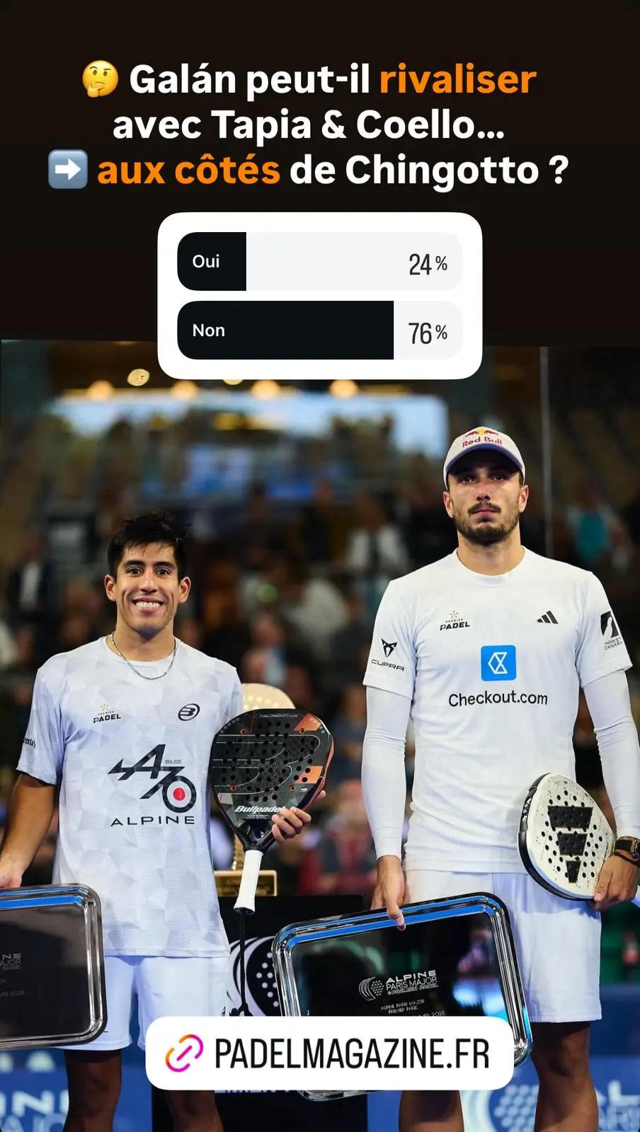 Fans spoke in a poll Padel Magazine : 76% believe that Galán cannot compete with Tapia and Coello in a duo with Chingotto. A reality that confirms what many have been whispering for several months: to aim for the throne, it may be necessary to change the formula.